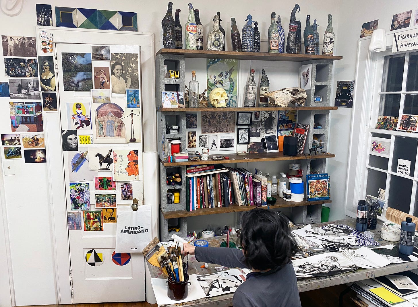MK: Yes, books and literature are constant sources from which I make my work. I’m not so good at illustrating specific stories, even though now and then I have done that successfully, but I do gather information from reading, and my mind’s eye gets ideas from imagery that comes to me through language. I am lucky to be able to read in three languages: Spanish, Portuguese, and English. Some of my favorite writers who have inspired many of my paintings and drawings include Clarice Lispector, Jorge Luis Borges, Roberto Bolaño, Jean Rhys, Elizabeth Hardwick, and Jane Bowles.